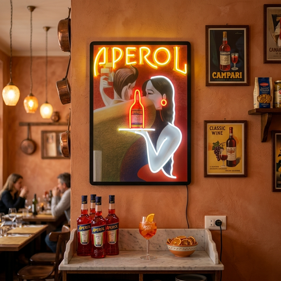 "Retro Aperol affisch" UV-tryckt LED-neonskylt
